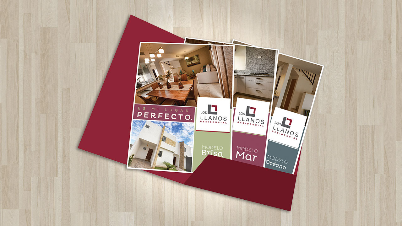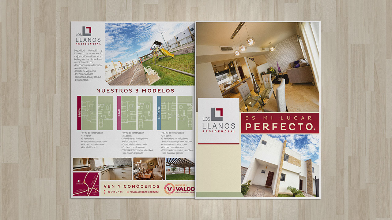 Flyer for a child-brand "LOS LLANOS" a real state development.
